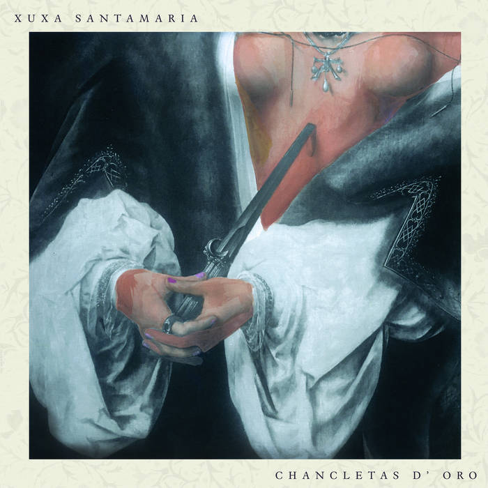 Chancletas D’Oro, XUXA SANTAMARIA’s third release and second full-length LP, is a loose concept album focused on exploring femme and womxn narratives drawn from both history and works of fiction. Side A employs reimagined myths, fables, and original fictional narratives to create songs that challenge or obfuscate the received ideas around feminine agency, motivations, and desire. In Puro Animal and King Marsile, Córdova recasts fictional characters (from “Dracula” and “The Song of Roland” respectively) who originally were little more than victims or mute accomplices within their narratives as willing participants in their own corruption or liberation; White Pine uses the text of an early 20th century poem about tribal life in the Pacific Northwest, written by a white trapper, as a means to simultaneously twist and redirect the white gaze in on itself while still celebrating the knowledge of land and sea possessed by this continent’s first peoples. The Borges-inspired Rudos Del Mar, written while Córdova was traveling along the coast of Chile, details the odyssey of a group of pirates patrolling the seas beyond the edges of language, reason, and time; closing out the side, Color Of The Dark is a (comparatively) straightforward ode to lust, love, and ego disintegration between bodies of color within the darkness of a dance club.